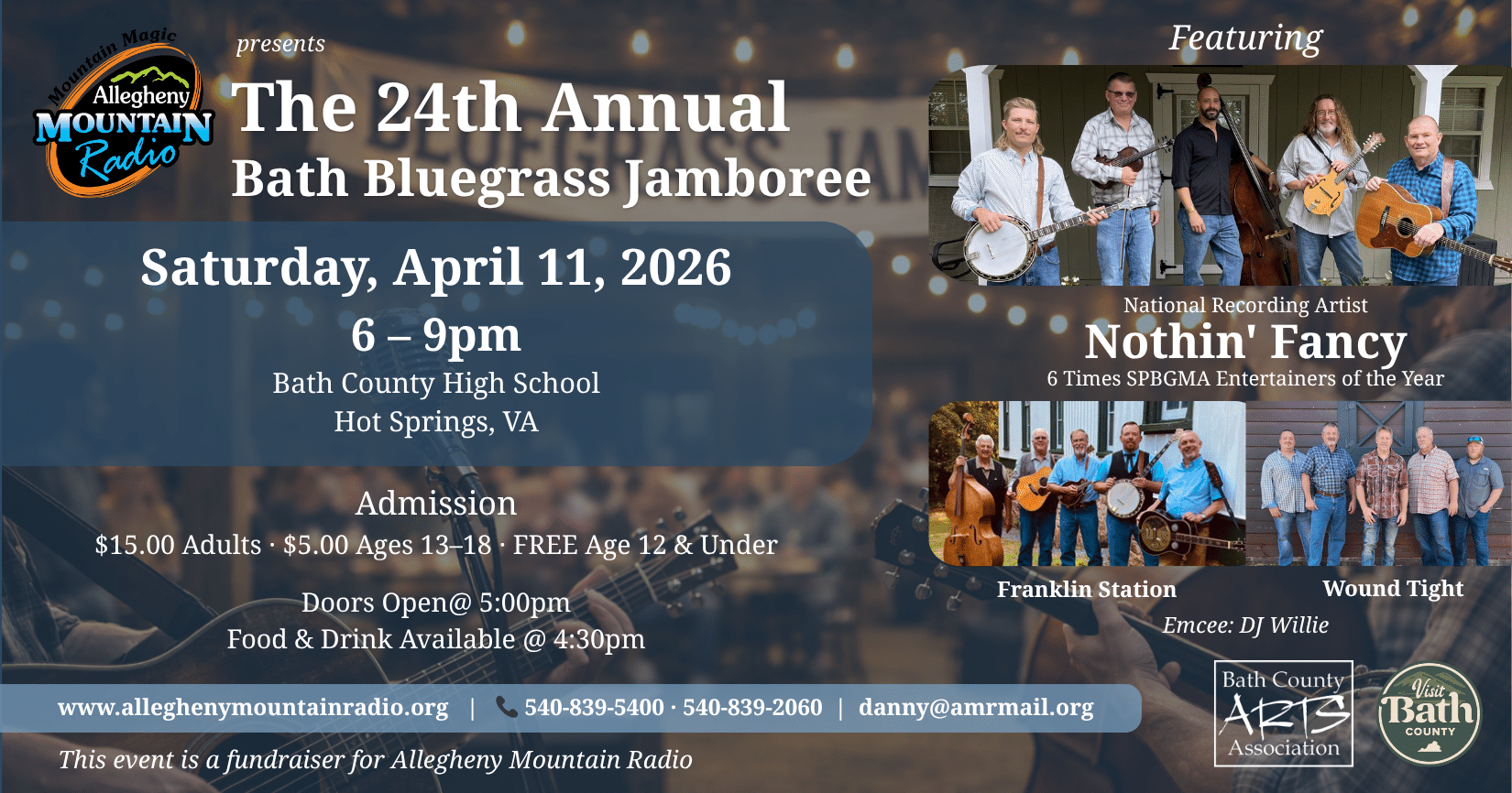 Join us for the 24th Annual Bath Bluegrass Jamboree. We are coming back to the Bath County High School Auditorium on Saturday, April 11, 2026, featuring traditional bluegrass music. Lineup: […]