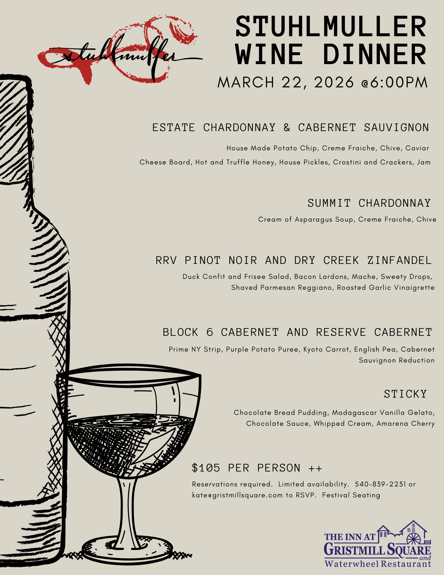 A night of delicious food & wine featuring Stuhlmuller Winery from Sonoma Valley California. Need to Know This is a pre-paid event so that we can plan and prepare in advance. Tickets limited to 20 people. Must cancel with at least 3 days' notice to receive a refund. If you can't give notice, you are […]